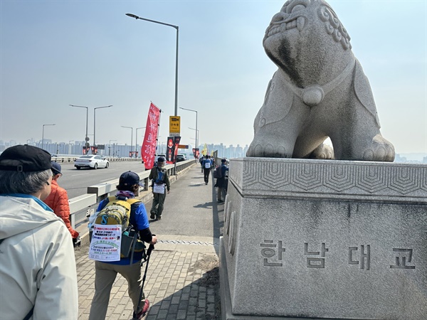 한강에서는 어떤 목적인지 요트 형태의 배가 운행한다. 한남대교를 건너면 길은 경부고속도로로 이어지지만, 걷기 길은 잠원로를 돌아 경부고속도 옆으로 난 공원길로 이어진다. 통신사 걷기 참가자들은 신사동의 식당에서 점심식사를 해결한다. 식사 후 50명 정도가 줄어든다.