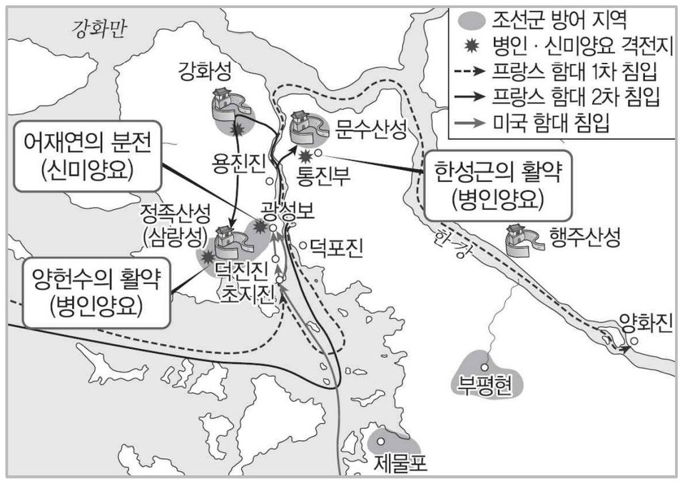 넷째, 미국은 조선원정을 단행할 때 처음부터 조선과 전쟁을 각오하고 강화도에 내침하였다는 것이다. 강화해협은 역사적으로 외국배의 출입이 금지되어 있는 군사적 제한지역이었다. 그러기에 해협 입구에는 외국배의 항행을 금지하는 이른바 ‘해문방수타국선신물과(海門防守他國船愼勿過)’ 비가 서 있었다.