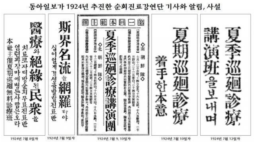 토막민 같은 빈민들은 아플 때 굶주림 못지않은 고통을 느낍니다. 참을 수밖에 없으니까요. 동아일보는 이 해 7월 초 여름 순회진료강연단을 꾸렸습니다. 조선총독부의원 의사 4명과 경성의학전문학교 학생 8명으로 2개 반을 편성해 10일 간 남북으로 각각 진료와 위생강연을 구상했죠. 지면에 알림과 사설까지 내면서 추진했지만 출발 직전 총독부가 불허 결정을 내렸습니다. 동아일보의 약속을 믿고 기대한 이들의 허탈함을 어떻게 설명할 수 있을까요.